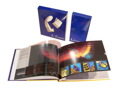 Anlässlich des neuen Milleniums druckten wir ein 80-seitiges Werk, das in einem zweiteiligen Einband herausgeben wurde. Ein Konzentrat an technischer Meisterleistung, sollte dieses Buch unser Savoir-Faire durch gefaltete Doppelblätter, Lentikularhologramme, transparente Folien, die im Vier-Farben-Verfahren bedruckt werden, sowie selektive Vergoldungen und Lackierungen zur Schau stellen. Dieses Buch bereitete uns auf die Eroberung der großen europäischen Märkte in den 2000er Jahren und die Einführung der neuen europäischen Währung vor.